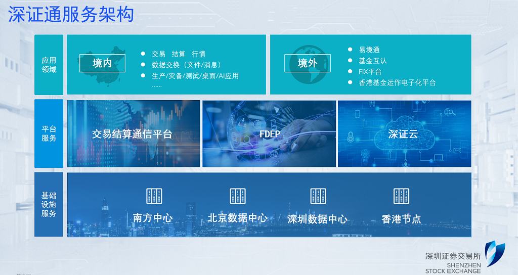 會(huì)上,深證通金融云業(yè)務(wù)部負(fù)責(zé)人著重分享了深證通助力資本市場(chǎng)創(chuàng)新發(fā)展的舉措。他認(rèn)為,當(dāng)前數(shù)字化轉(zhuǎn)型是大勢(shì)所趨,數(shù)字新基建是數(shù)字化時(shí)代的基礎(chǔ)性保障措施,既是驅(qū)動(dòng)力,又是賦能者。深證通20余載深耕證券金融行業(yè),專注為行業(yè)提供數(shù)字化基礎(chǔ)設(shè)施服務(wù),正在承擔(dān)越來(lái)越多的使命。“深證通的整個(gè)服務(wù)體系由一中心、三平臺(tái)組成。一中心指行業(yè)數(shù)據(jù)中心,三平臺(tái)包括交易結(jié)算通信服務(wù)平臺(tái)、金融數(shù)據(jù)交換平臺(tái)、行業(yè)云服務(wù)平臺(tái)”,他介紹道,“通過(guò)一中心、三平臺(tái)服體系,深證通為境內(nèi)外證券金融機(jī)構(gòu)提供主機(jī)托管、交易通信、金融數(shù)據(jù)交換和云計(jì)算等豐富的服務(wù)產(chǎn)品,支持金融機(jī)構(gòu)在中國(guó)證券行業(yè)的經(jīng)營(yíng)與發(fā)展。”